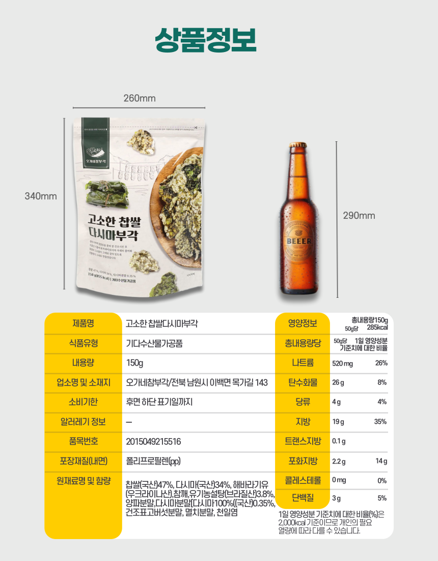 오가네 찹쌀 다시마부각 150g